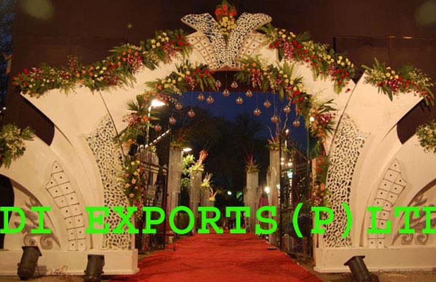We are original manufacturers and exporters of any type of Indian Wedding FIBER ENTRANCE GATE Mandaps Mandap Pillars Wooden Mandaps Carved Mandaps Wrought Iron Mandaps Fiber Mandaps Wedding Stages Stalls Mandap Backdrops Aisle corridor Pillars Entrance Statues Welcome Themed Gates Lighted Pillars Mandap Furniture Mandap Carving Furniture Bride and Groom Two Seater Chairs Banquet Hall Chairs Chair Covers Bows Sashas sashes Ribbons caps Table Covers Table Runners Table Napkins Table Skirtings Canopies Tents Embroided Backdrops Plain Backdrops Lighted Backdrops Carpets Cushion Covers Flower Decoration Material Mandap Decoration Flower Chains Wedding Umbrellas Themed Umbrellas Wedding Doli Palki Palquin Swings Jhoolas Royal Thrones Catering Equipments Chaffing Dishes Karahi Stands Stainless Steel Aluminum Brass Copper Utensils of all Types Sizes Disposable Papers Thermocol Crockery Center Table Decoration items Wrought Iron Center Tables Stands Horse Drawn Wedding Carriages Cinderella Carriages Bugghies Horse Costumes Elephant Costumes Howdahs.